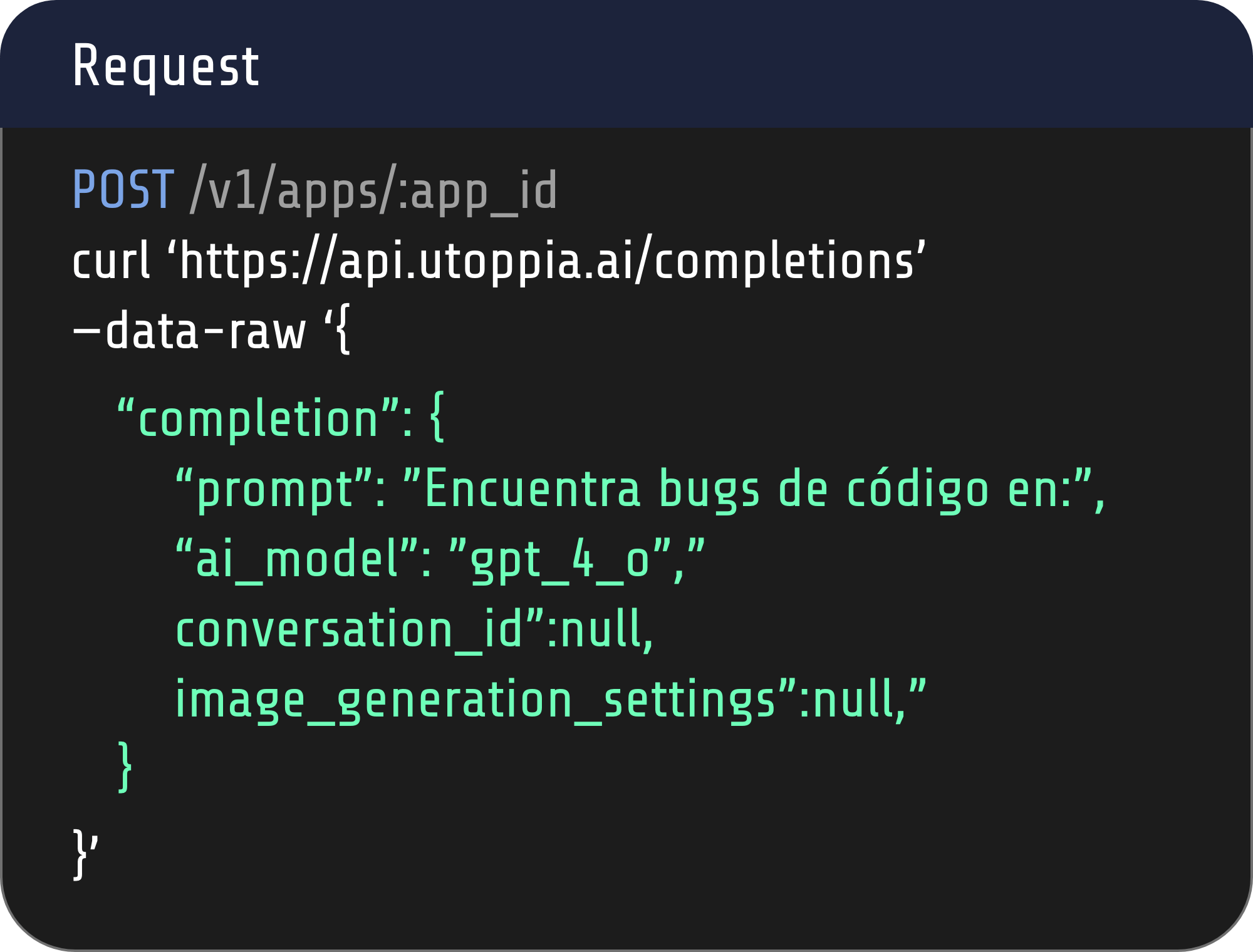 Administra tus datos de manera programática a través de Utoppia. La API de Utoppia ofrece la posibilidad de interactuar programáticamente con todas las características de la plataforma, incluyendo Fuentes de Datos y agentes personalizados avanzados. Aprovecha Utoppia de la manera que prefieras, adaptándose a las interfaces de producto que mejor se ajusten a tus necesidades.